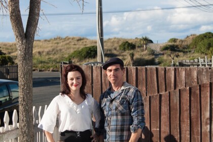 Lizzie and David outside their house in New Brighton