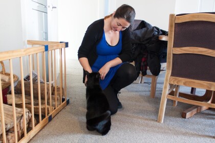 Shanna and Inky the cat in their home on Marine Parade. Inky ...