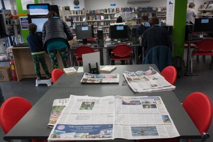 Daily papers from The Press on display in the temporary New ...