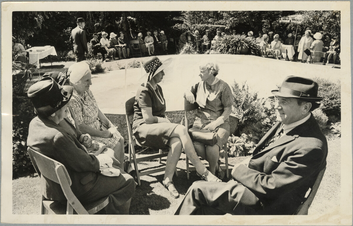 Members of the Canterbury Pilgrims Association at a garden party at the home of John Oakley.
