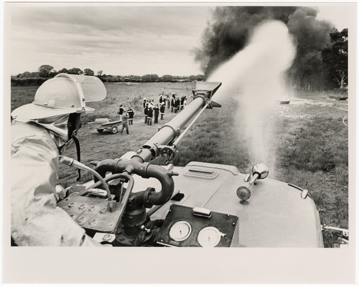 Senior rescue firefighter, Henry Waitoa sprays foam on to burning fuel as part of an exercise at Blue Skies training camp.