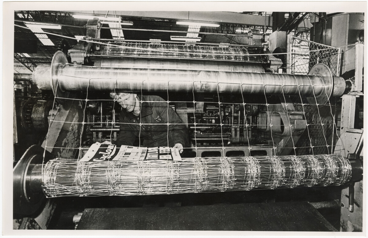 Andrew Regald inserts a card into a roll of deer fence netting at the Cyclone factory in Bromley.