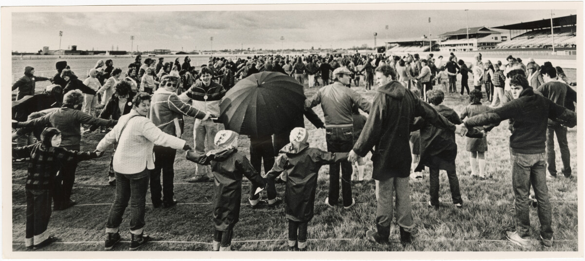 An attempt to break the world hand holding record at Addington raceway. Only 1,000 people turned up.