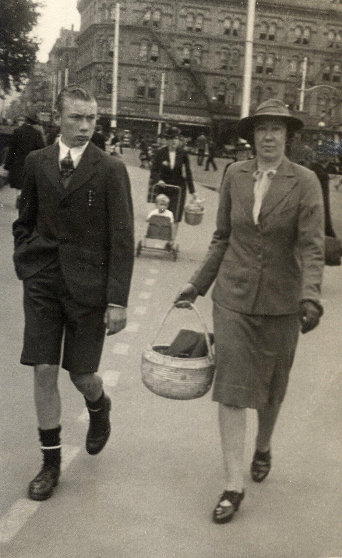 “Edith and George. My grandmother and father in the square. Edith worked at the spa milk bar opposite Ballantynes, she was there during the fire offering tea and comfort. Today is George's 92 birthday.” - Contributor’s note