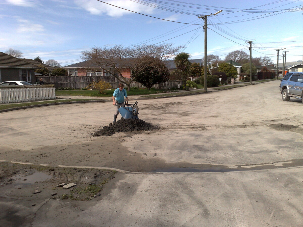 Helping Grandparents Clean up after Christchurch Earthquake in Dallington.