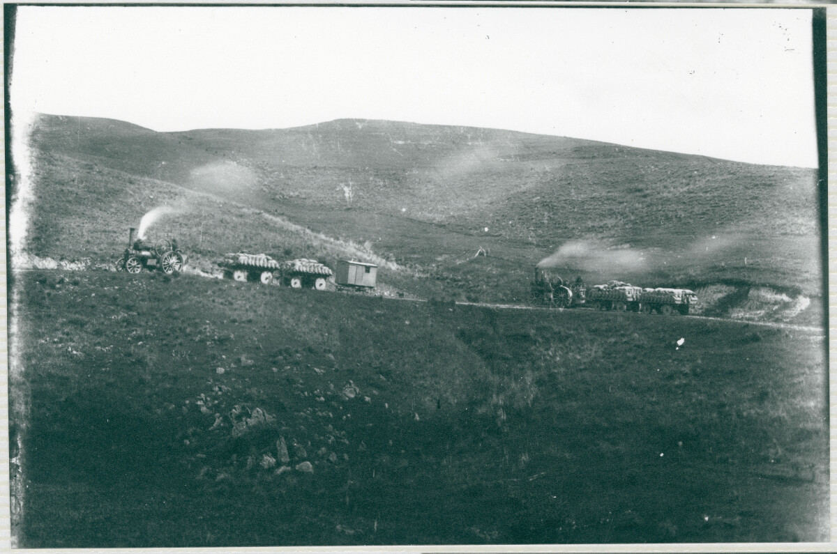 Carting grain on back road to Waimate 1915.