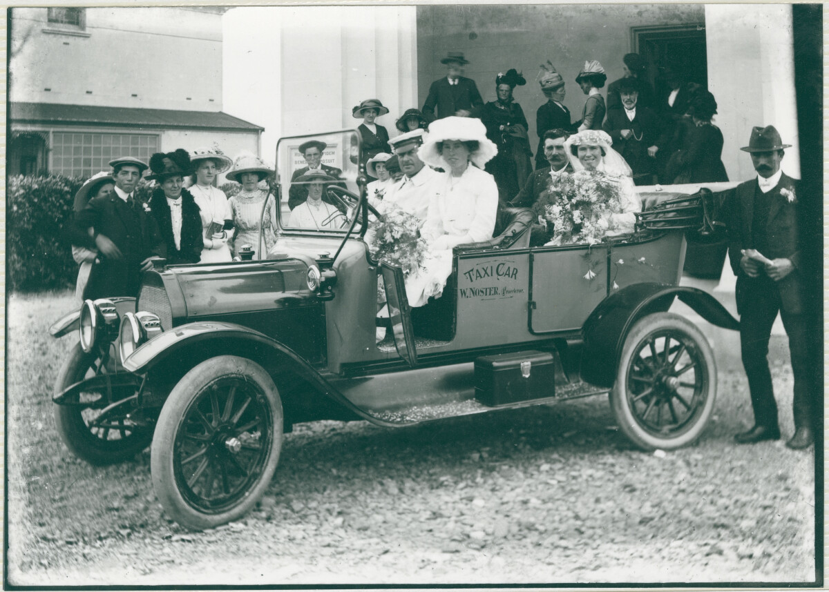 Wedding of Madge and Jim Sheddan at St Patrick’s Church, Waimate on the 11th February 1914. Barney McKee, Kit McKee, Greg McKee and Con McKee.