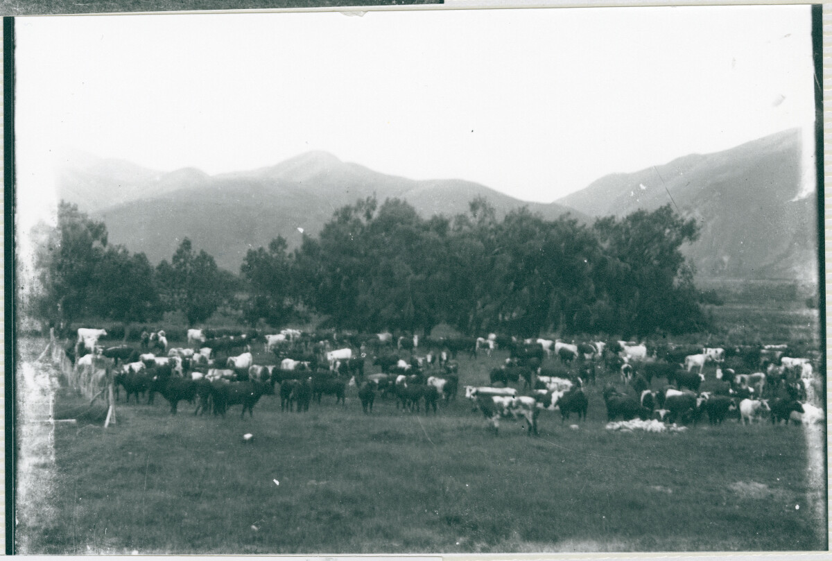 Herd of cattle, owner unknown. Thought to be on Banks Peninsula.