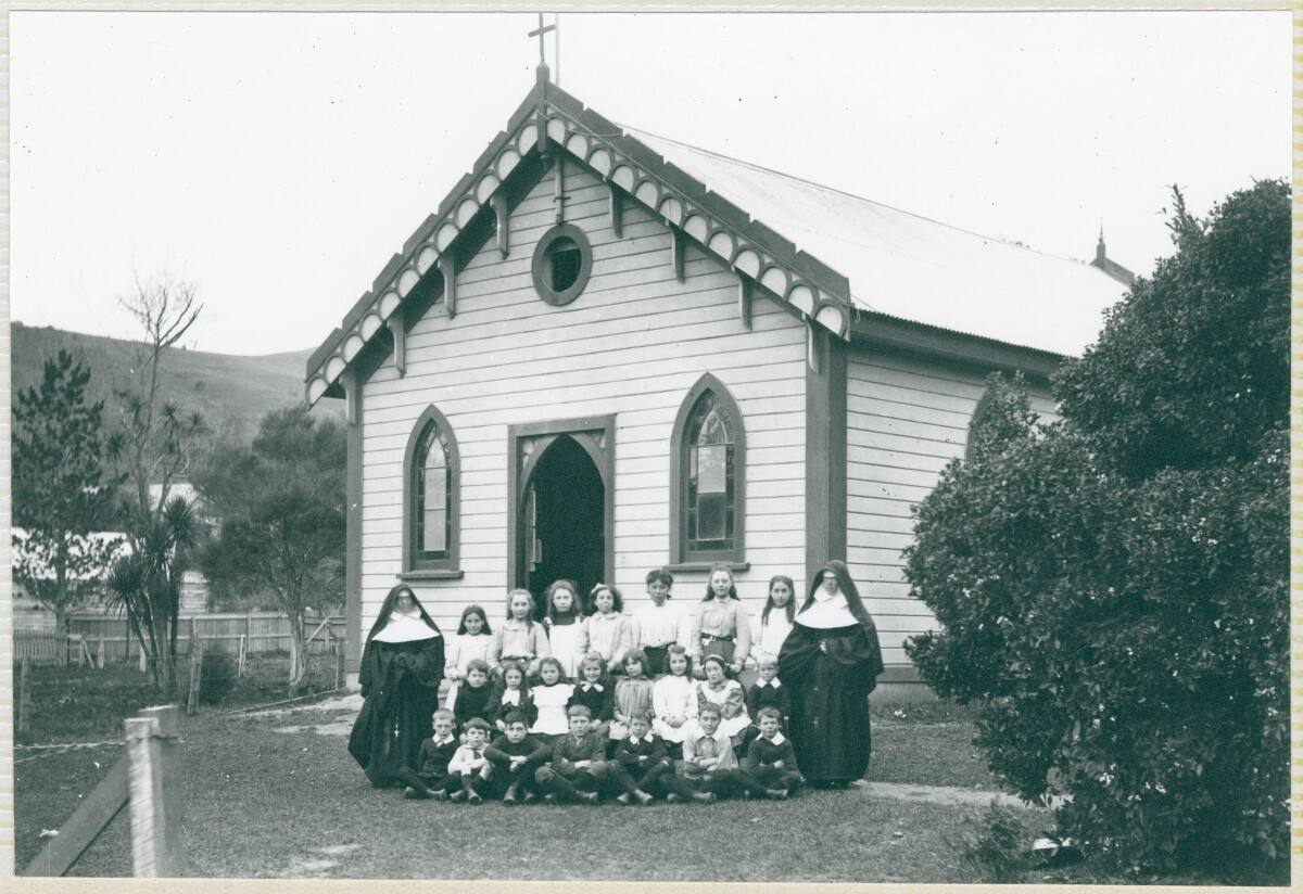Akaroa Convent showing nuns with pupils. C1912-1918.