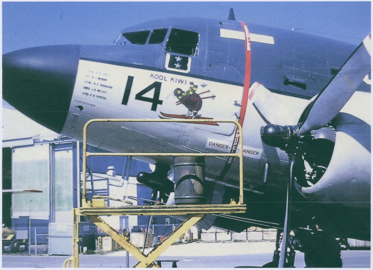 American DC3 aircraft at Christchurch Airport getting ready for the trip to Ferrymead Museum. (Plane is currently housed at Ferrymead).