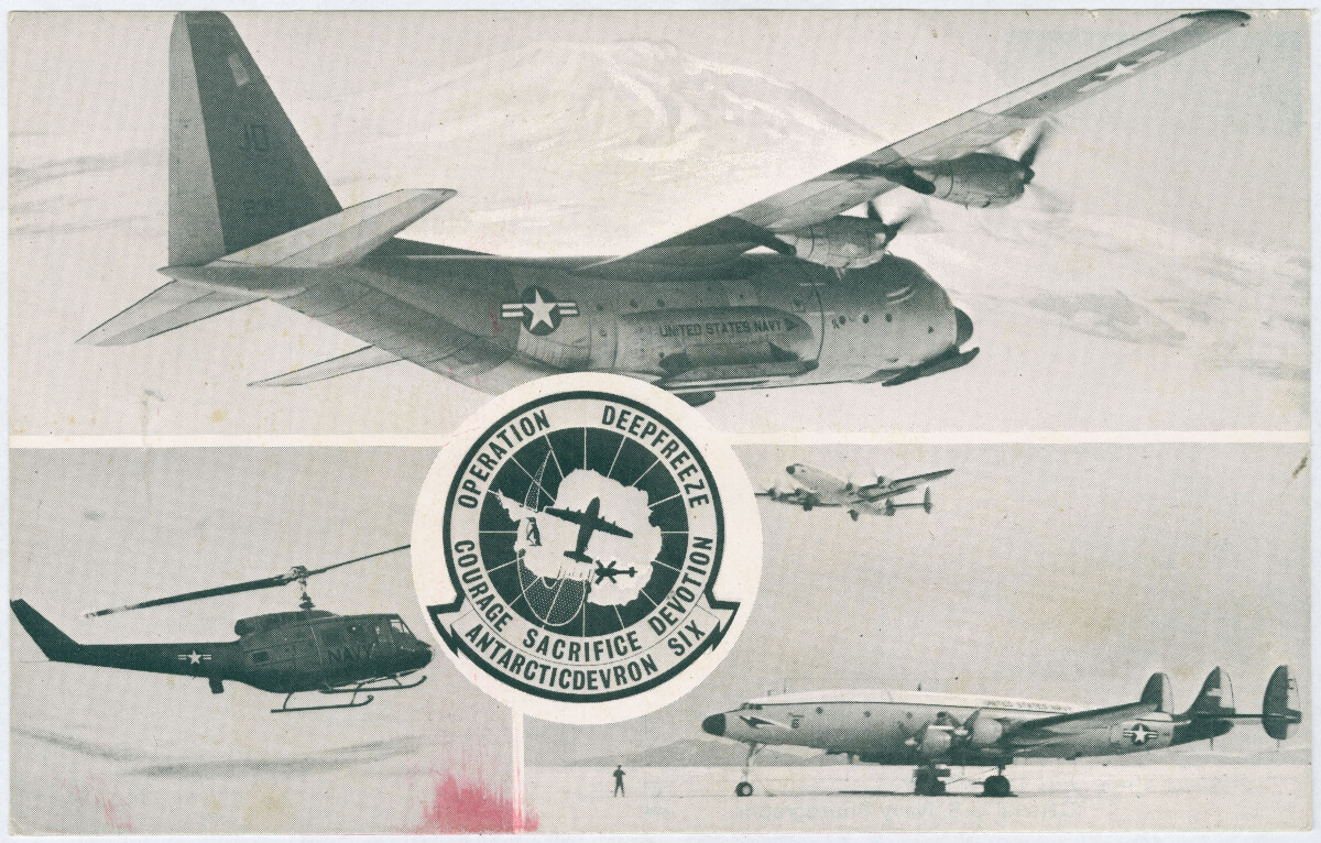 Operation Deepfreeze postcard depicting United States Navy aircraft on ice.