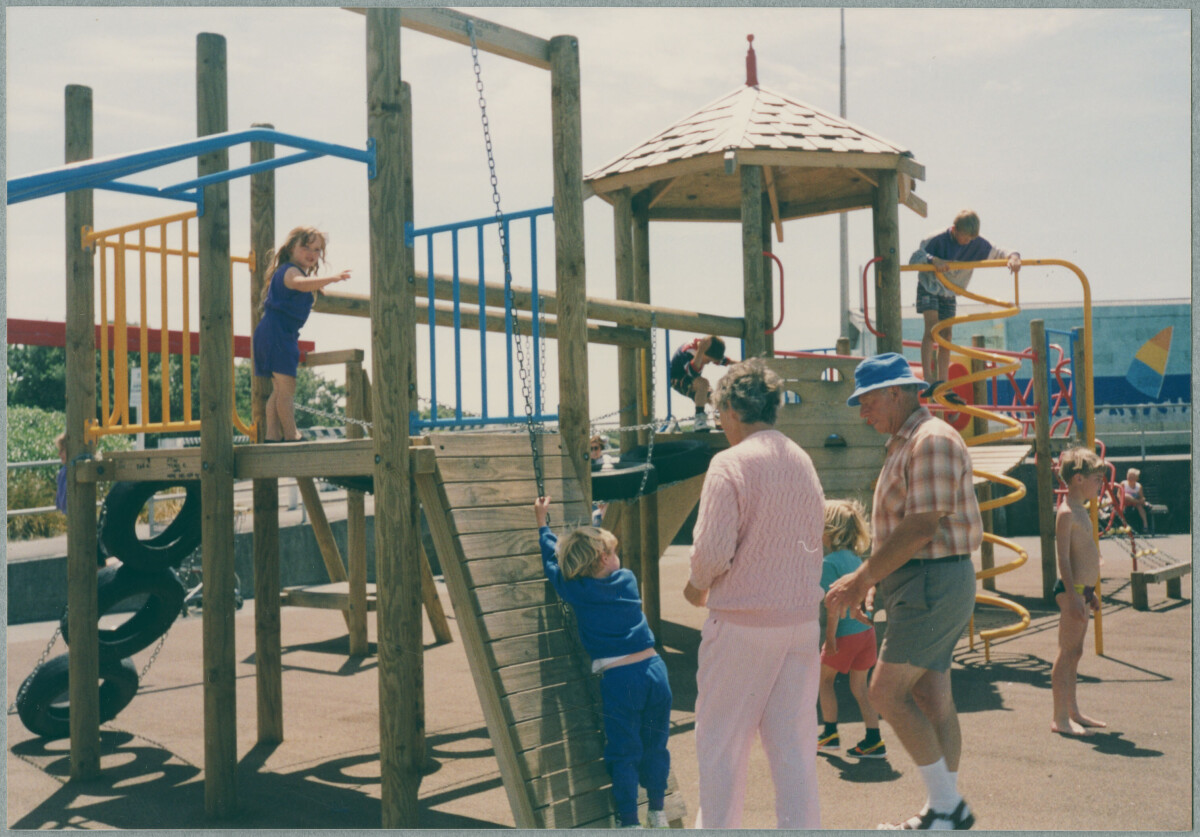 Gail Cook playing on the playground in New Brighton.