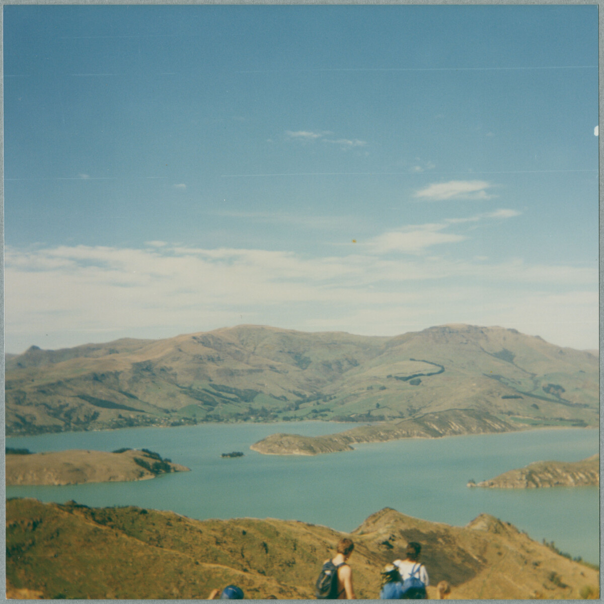 The view of Lyttelton Harbour from the summit of the Sugarloaf circuit walking track. This was during a school trip for Phillipstown Primary School students.