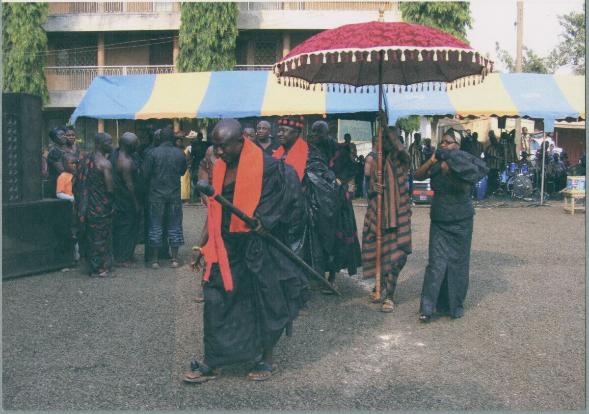 The chief of Kwahu in Abetifi, Ghana arriving at the funeral ground. He is attending a funeral for his mother.