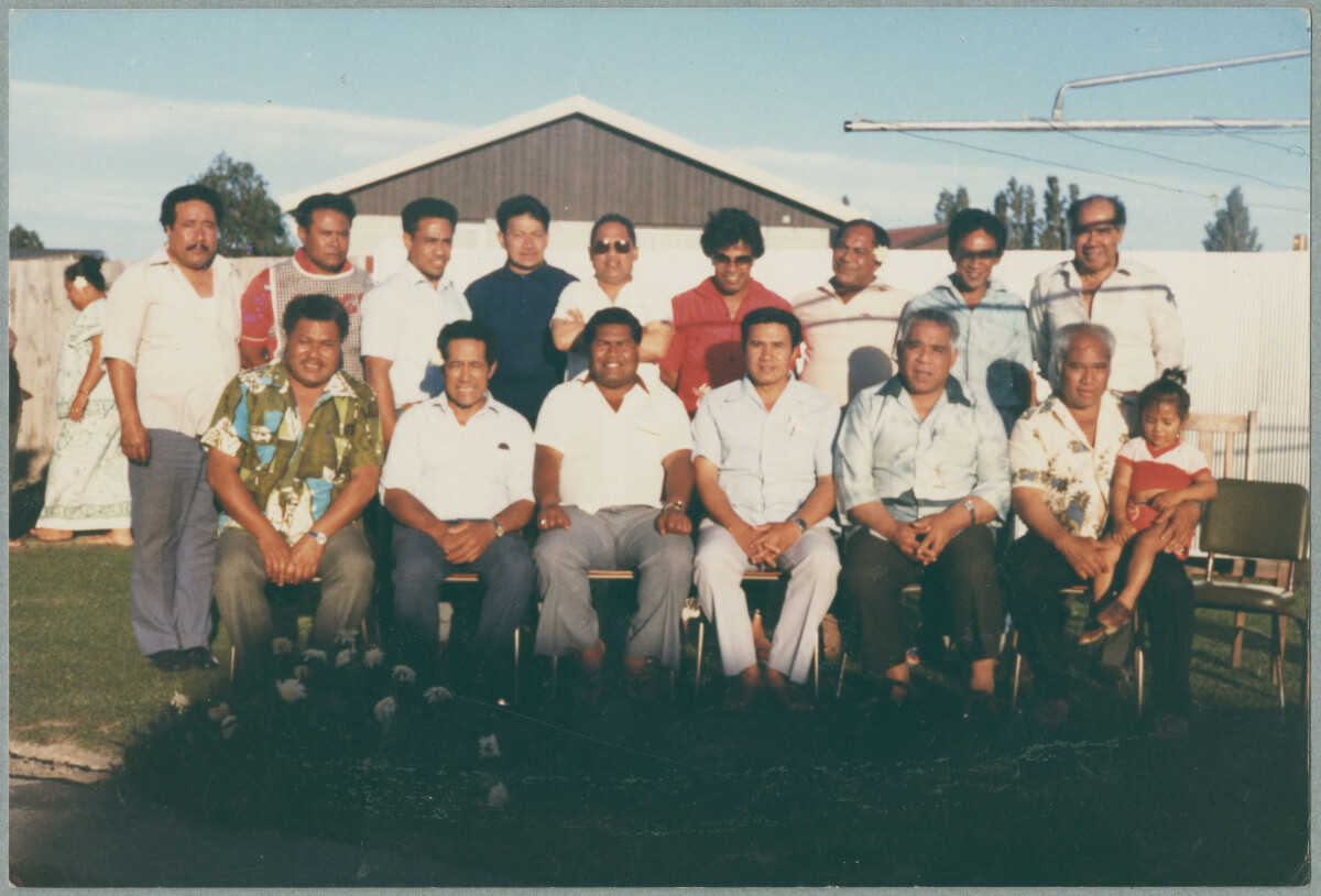 Farewell gathering. Members of the St Paul’s Trinity Pacific Presbyterian Church from Linwood/Bromley/Woolston areas. Farewell for Samoa and Kupi Mavaega and family. Back row: Vite Fa’aope, Fa’aolatane Togiaso, Silasene Faimalo, Laulusa Palenapa, Siaosi Tuli, Si’u Fenika, Vaota Vaiaso, Ma’i Pulemau, Tatupu Si’u. Front Row: Fa’aesea Sila. Tavita Nouata, Uili Tomuli, Samoa Mavaega, Asiata Aiona, Filoitumua Feterika, Kenape Feterika.