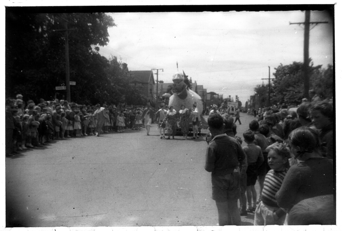 Crowds watching the Mother goose float