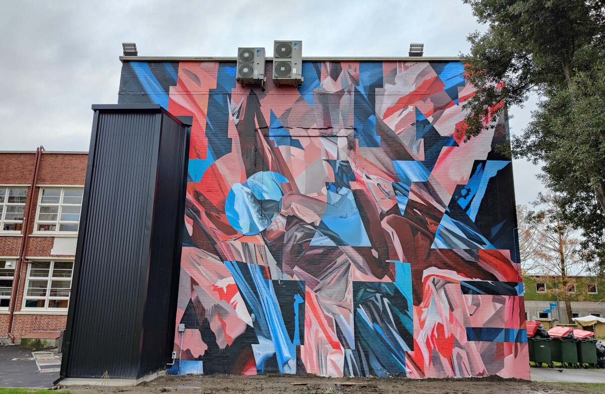 A mural titled "INNOVATE" by Askew One, commissioned by the ARA Institute of Canterbury and located on the Tahatika block on the campus at the corner of Madras Street and Moorhouse Avenue.