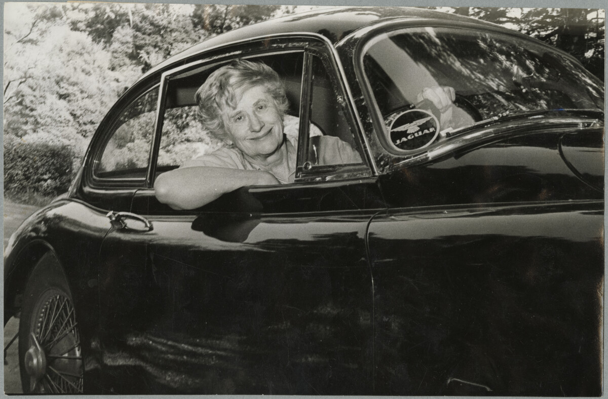 Ngaio Marsh sitting in a car