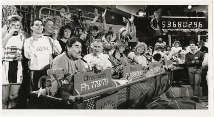 Jason Gunn and the Wizard sing with Becca Coulbeck at Telethon.