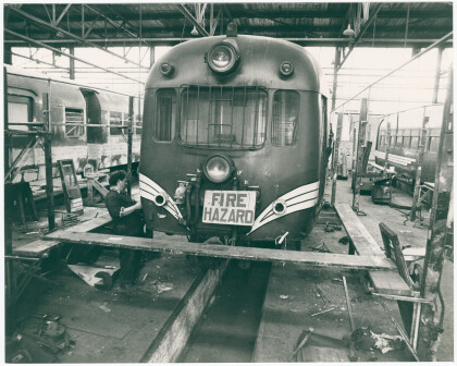 Alan Monson repairing a railcar unit at the Addington Railway ...