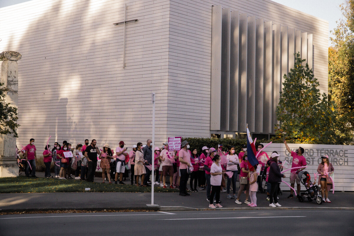 Celebrating Philippines' Araw ng Kagitingan (Day of Valor) with a Walk of Solidarity with Leni Robredo and Kiko Pangilianan supporters. The walk started from Oxford Terrace Baptist Church passing through New Regent St, around Te Pae and all the way to the Bridge of Remembrance. The group congregating in front of Oxford Terrace Baptist Church before the walk.