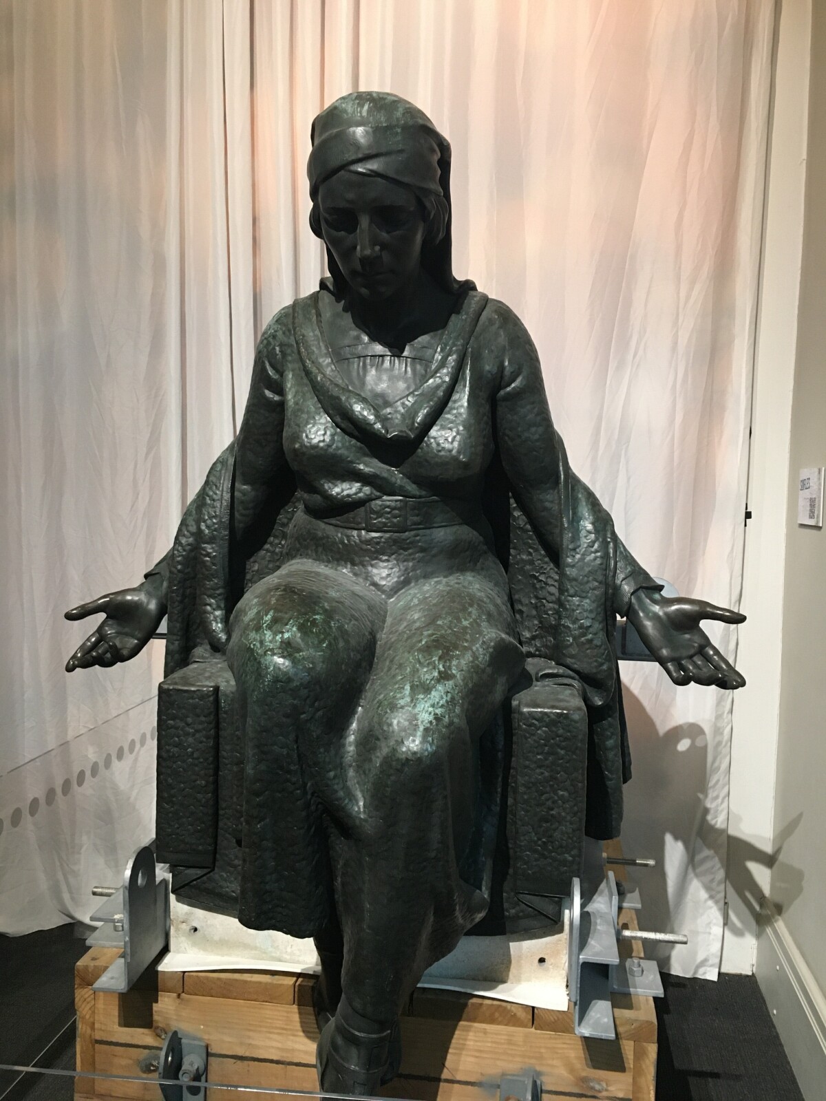 A figure that forms part of the citizens’ war memorial on display at Canterbury Museum after the memorial was removed for restoration and prior to being reinstated on new foundations in Cathedral Square. This figure represents the mothers of the Empire grieving for their sons.