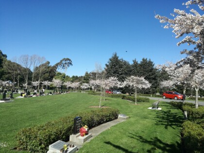 Trees in blossom at Avonhead Park Cemetery