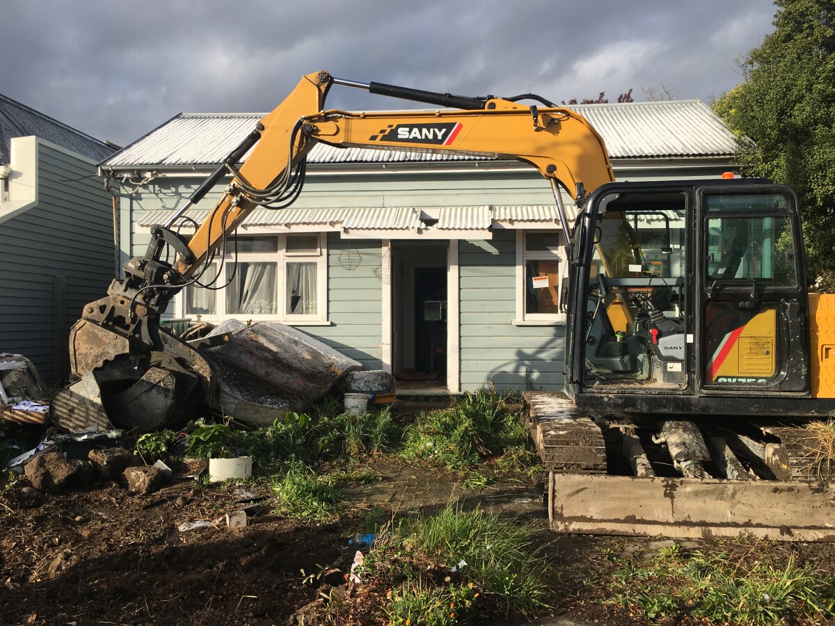 Cottage at 163 Bordesley Street about to be demolished by a digger.