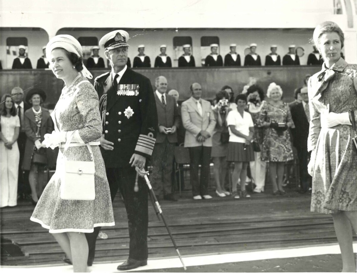 Queen Elizabeth, Prince Phillip, Princess Anne were in Christchurch for the 1974 Commonwealth Games. They were staying on the Royal Brittania in Lyttelton.