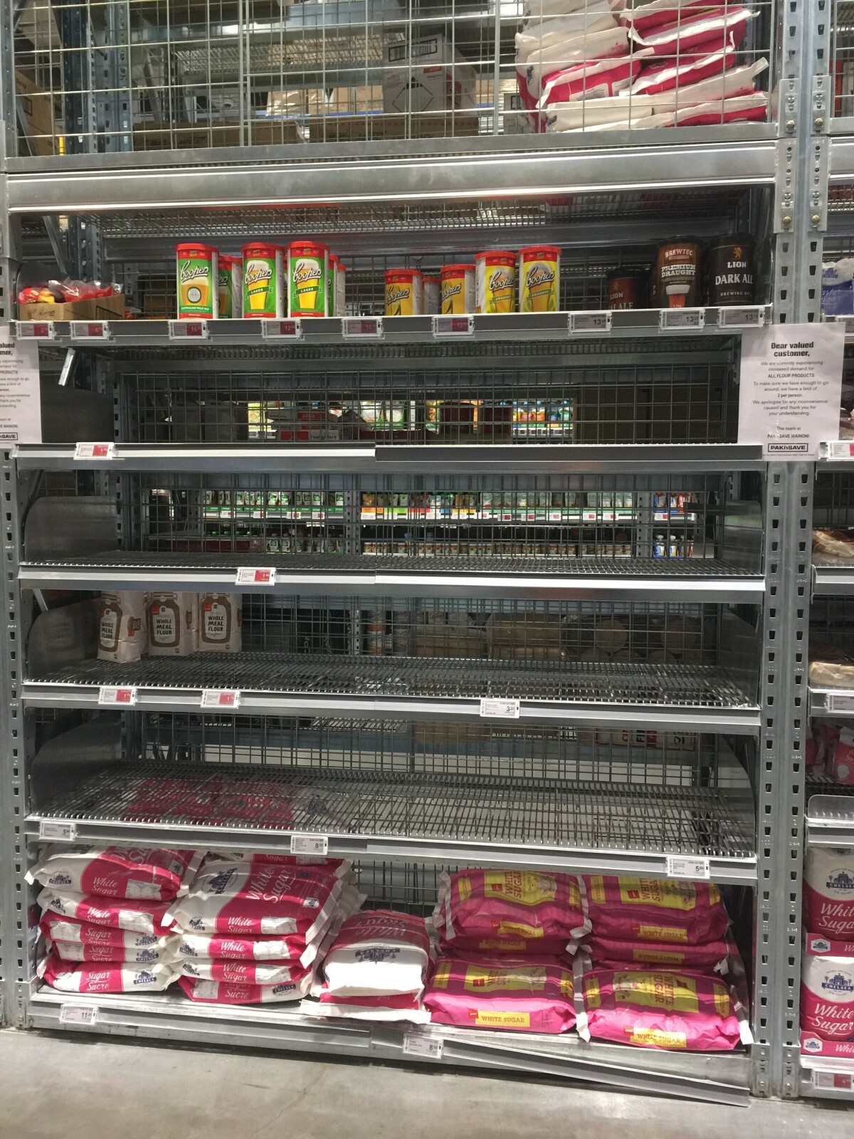 Empty flour shelves at Pak 'n Save Wainoni during Covid-19 lockdown.
