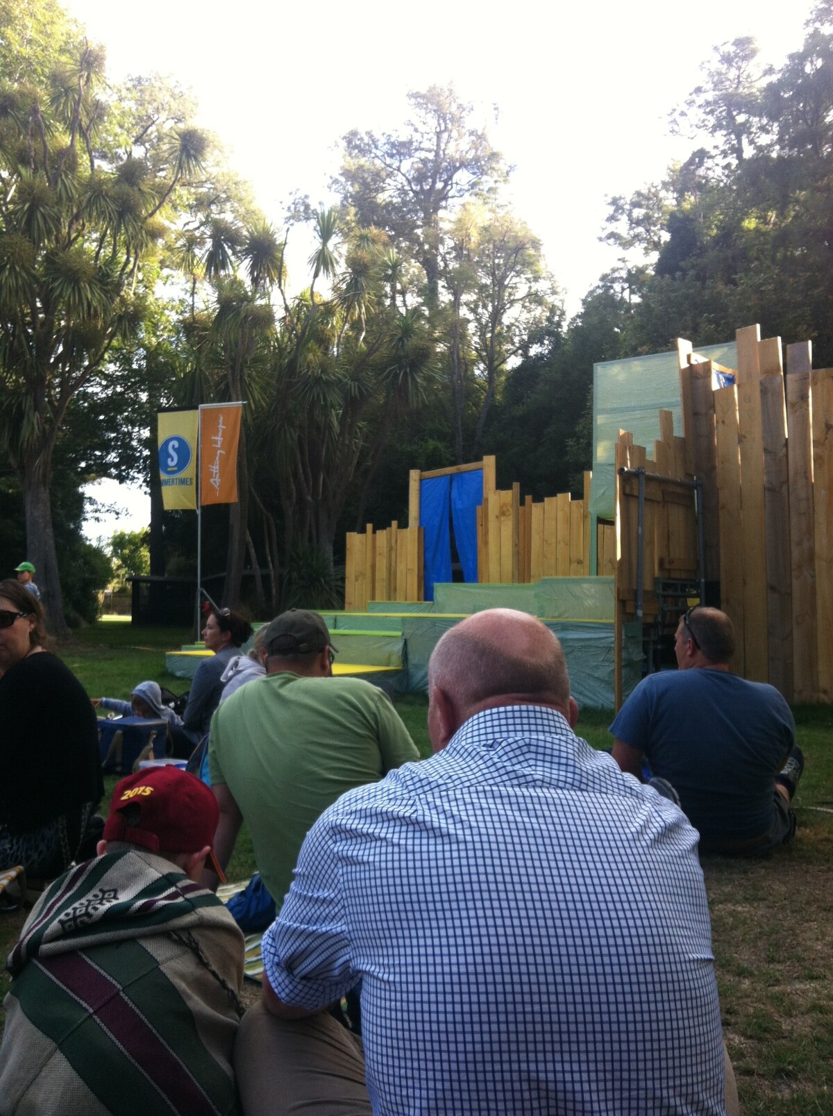 Stage set up for the Court Theatre production of the Wonderful Wizard of Oz in Riccarton Bush, beside Riccarton House.