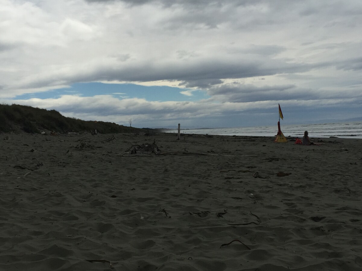 Flag on the sand at Waimairi Beach.
