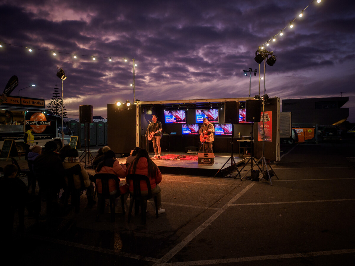 This was the first time the annual public fireworks event at New Brighton was held in winter, after Matariki was made a public holiday. The band performed through the sunset.