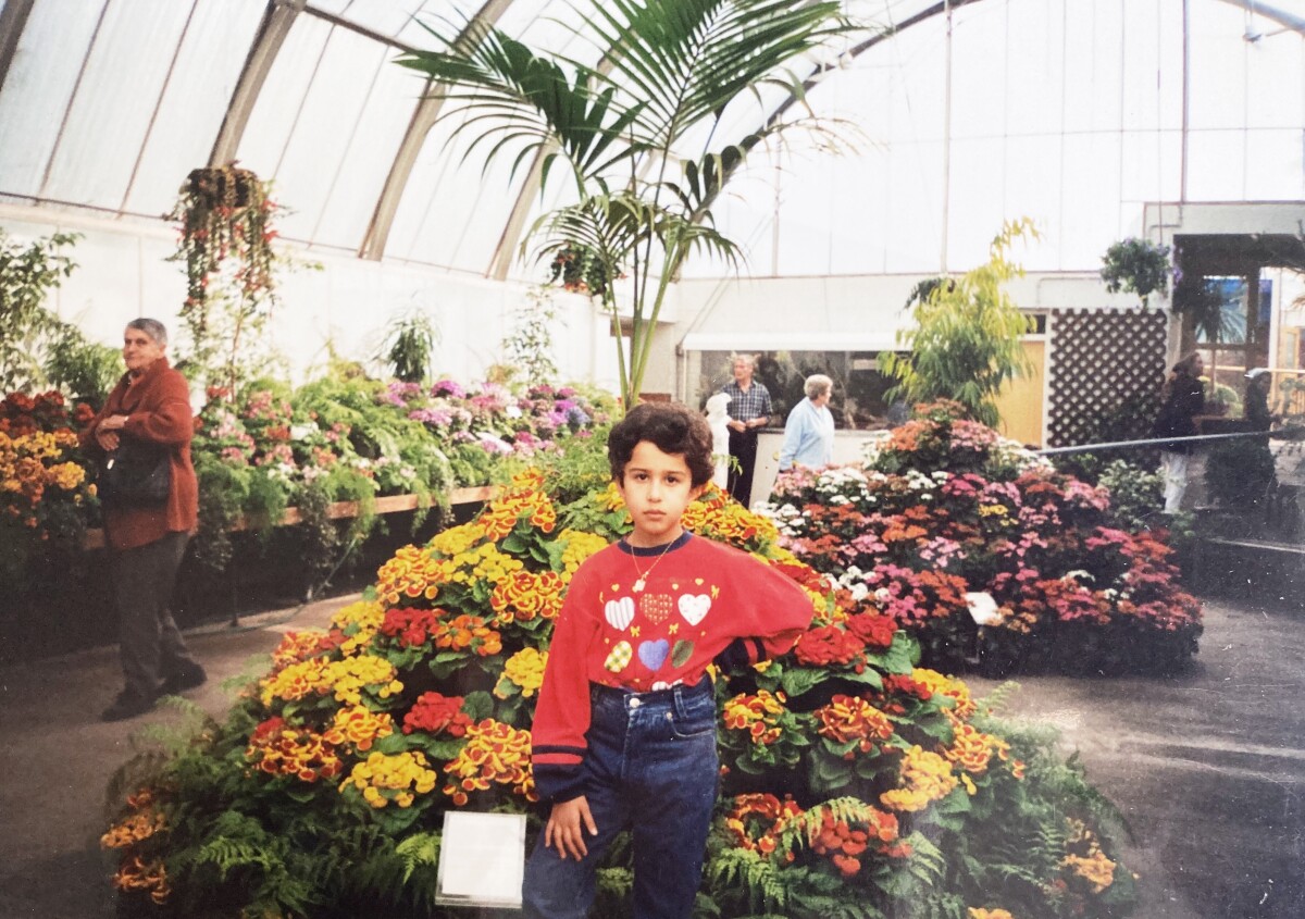 A photo of me at the Christchurch Botanical Gardens on my family's first days in New Zealand after migrating from Iran.