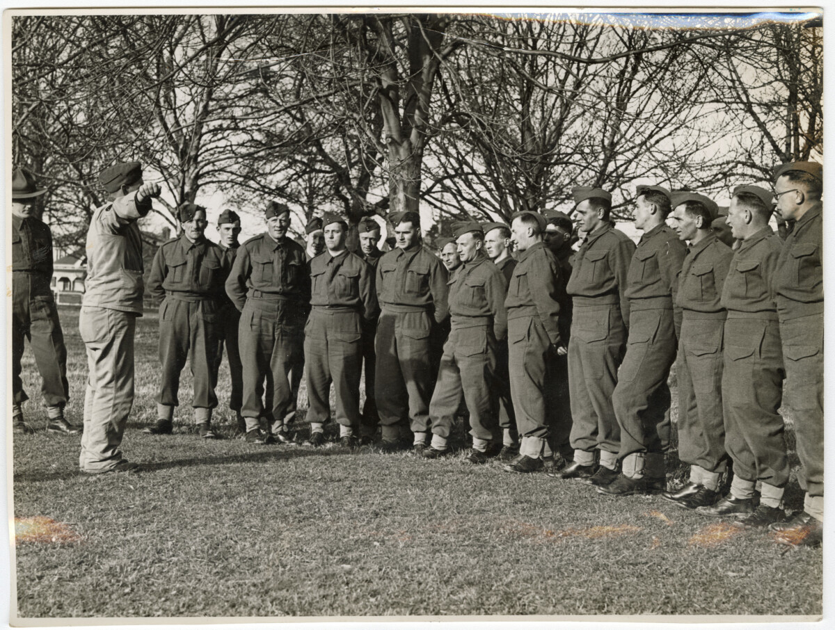 A group of field signallers attending a training lecture at the District Military School in Burnham during the Second World War.