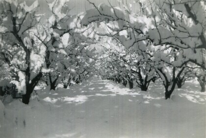 Snow storm at Shenley Orchard or neighbouring Cherry Orchard, Harewood