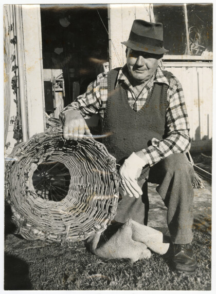 Basket willow grower at Harewood Mr Arthur Hedges posing with a ...