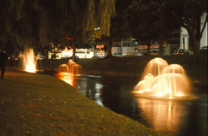 Lights on the Avon river near where the Town Hall stands (circa ...