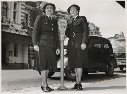 Mrs K. R. Banich (left) and Mrs A. E. Rees, parking attendants, ...