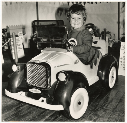 Child in a toy convertible at the Motor Show Trade Expo '87