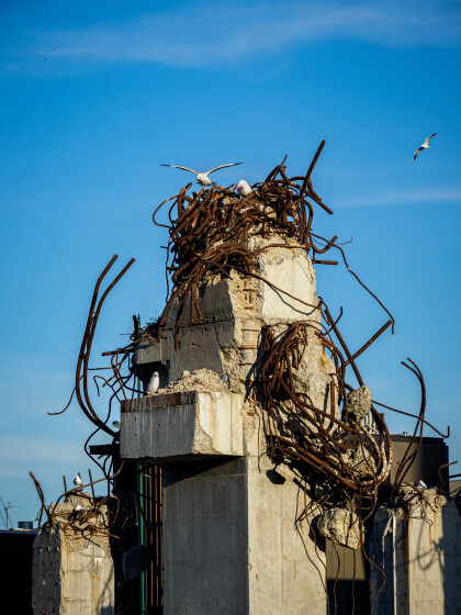 Seagulls nesting in the ruins of the old Price Waterhouse Coopers building