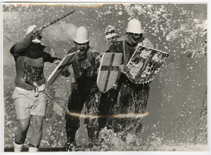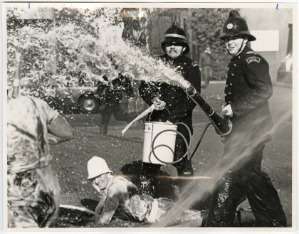 Jo King in the Bowker Fountain in Victoria Square