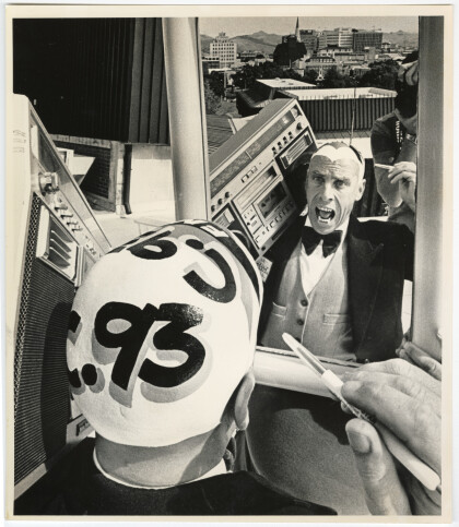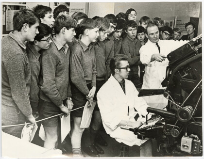 Shirley Boys' High students, linotype machine demonstration