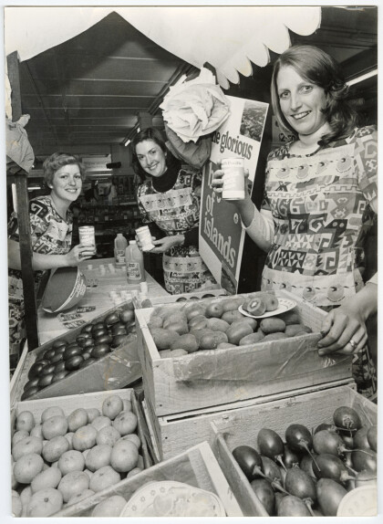 Jo King, Farmers employee, takes her tea break in the Bowker ...