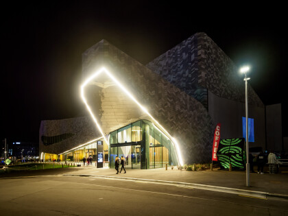 Side view of Te Aika outside Te Pae