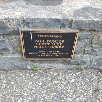Plaque commemorating Paul Dunlop, Scott Lucy, and Neil Stocker ...