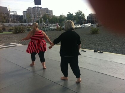 Two women dancing at the Gap Filler Dance-O-Mat on the corner of ...