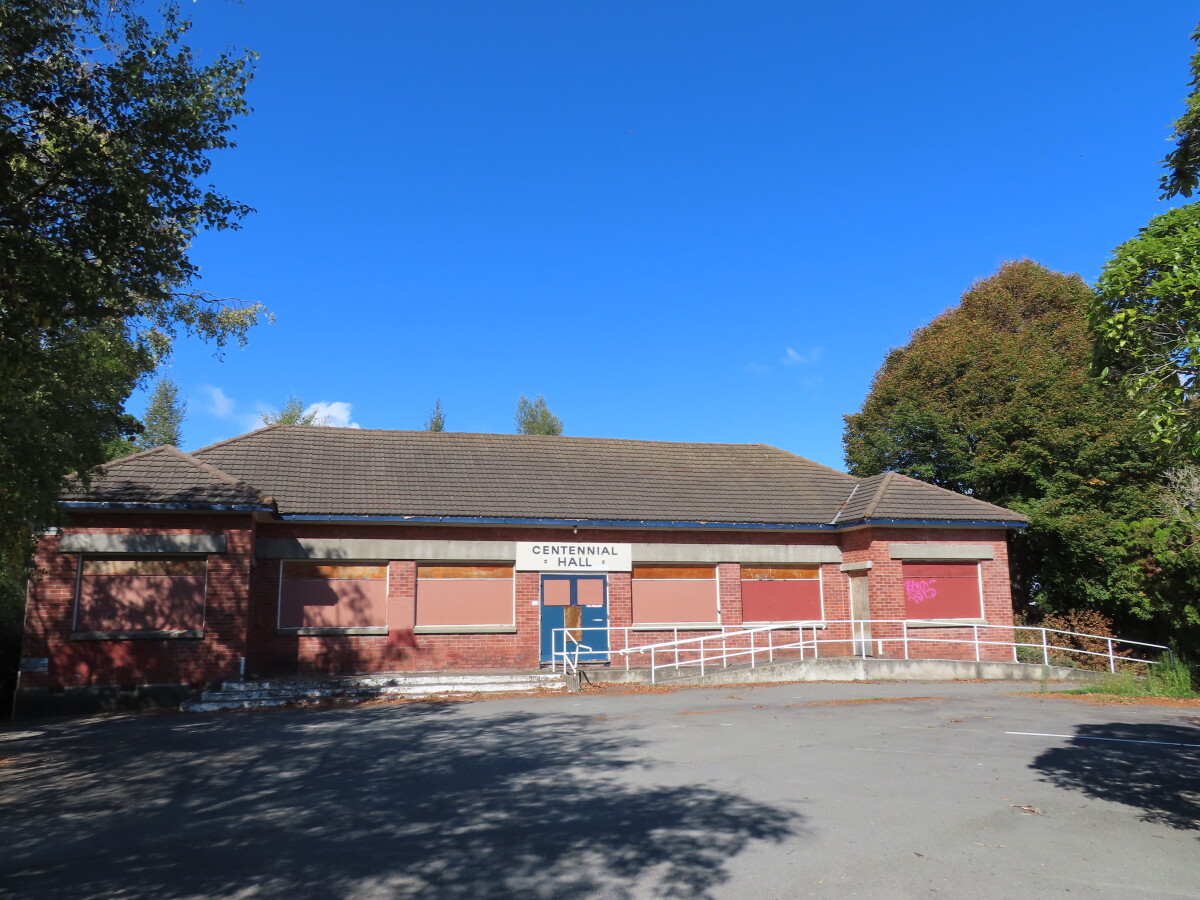 Centennial Hall built at the corner of Sparks Road and Lyttelton Street in 1955. The building sustained earthquake damage and never re-opened after the 2011 earthquakes. It was demolished at the end of March 2022. Used by the Spreydon Ratepayers Association, community groups, polling booths, various clubs and featured in a scene in the movie, Heavenly Creatures, in 1994.