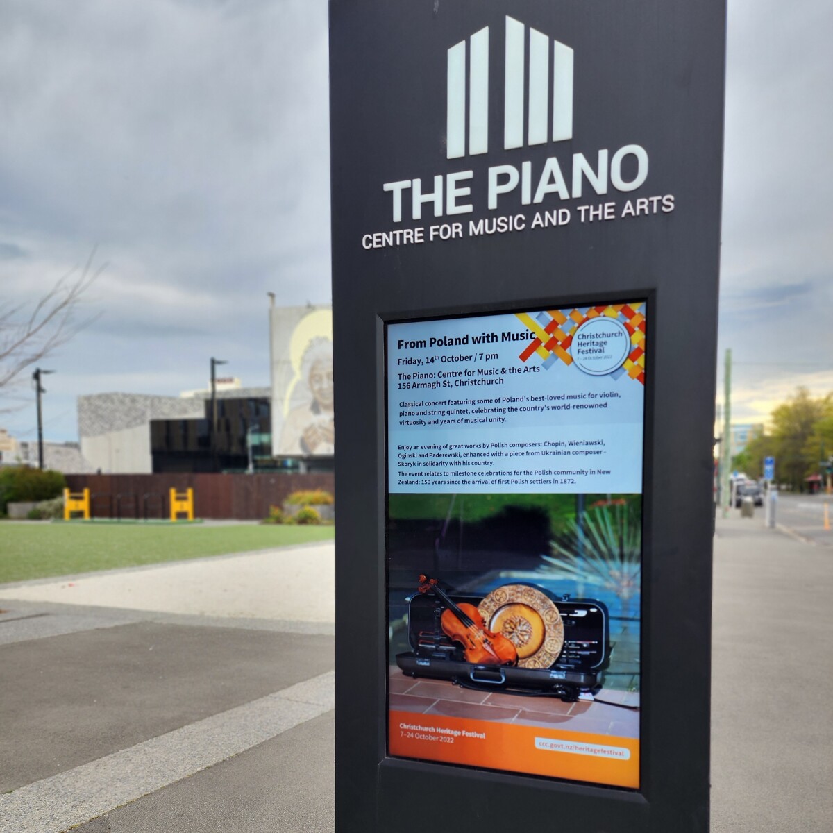 Christchurch Heritage Festival 2022 - Our Stories: Milestone and Moments: 'From Poland With Music' concert, featuring some of Poland's best-loved music for violin, piano and string quintet, celebrating country's world renowned virtuosity by Chopin, Wieniawski and Oginski. The concert was held on October 14th 2022, relating to a milestone celebrations for Polish community in NZ: 150 years since the arrival of first Polish settlers in 1872. The event was organised in cooperation with Polish Embassy in Wellington and 'Wieniawski Society Musical Society' (Poznan, Poland).