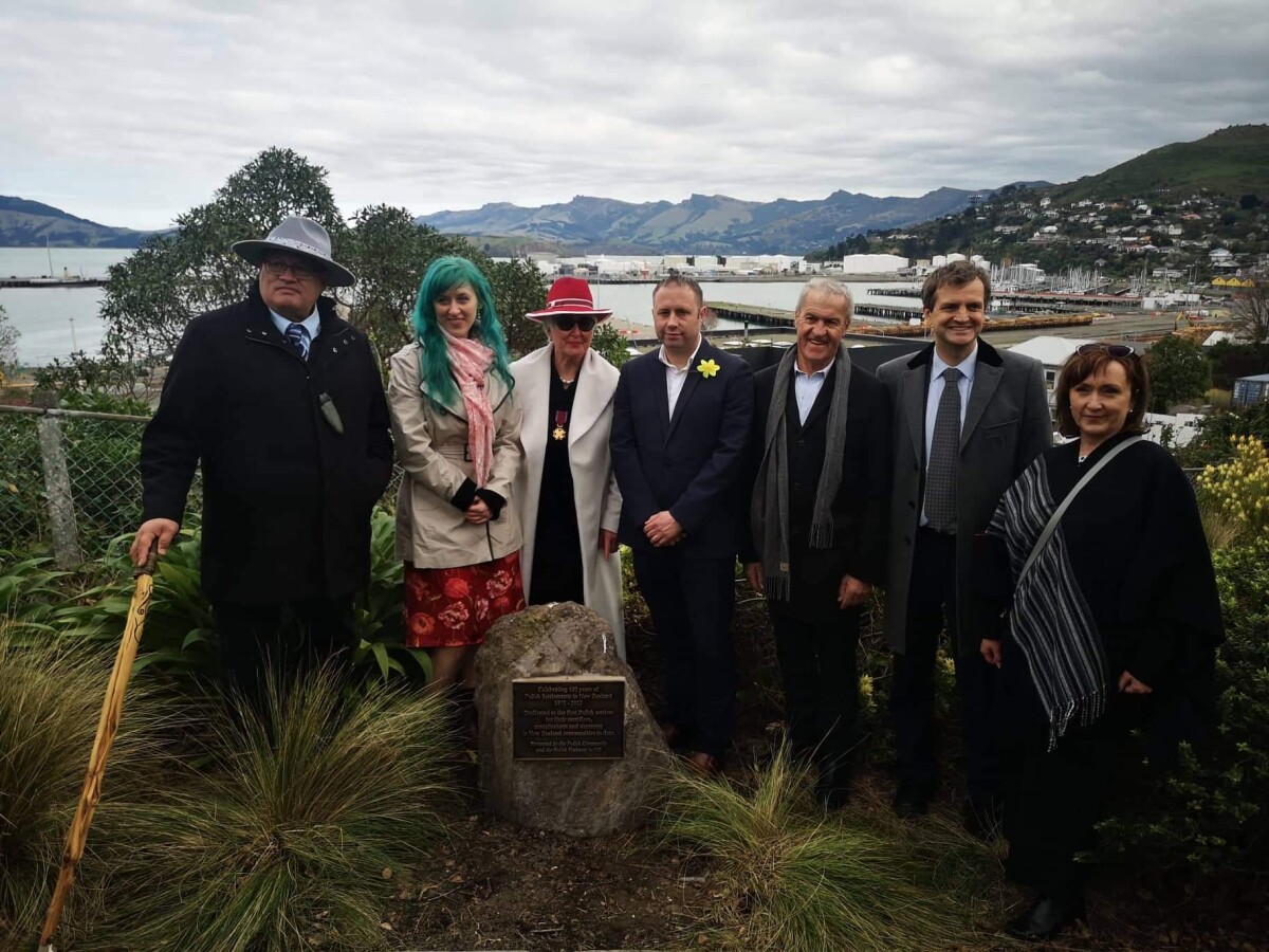 Commemorative plaque, dedicated to first Polish settlers to NZ was officially unveiled on May 1st, 2022 and placed in Lyttelton overlooking the harbour, where they arrived in August 1872.